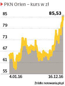 Kurs Orlenu od początku roku wzrósł o 25,5, a od publikacji poprzedniej strategii w lipcu 2014 r. — aż o 97,5 proc. W listopadzie koncern po raz pierwszy został spółką z najwyższą kapitalizacją na GPW. Analitycy nie przesadzają jednak z optymizmem — średnia docelowa cena akcji Orlenu w ciągu 12 miesięcy to według nich 72 zł, czyli o 15 proc. mniej niż teraz. Z 10 ostatnich