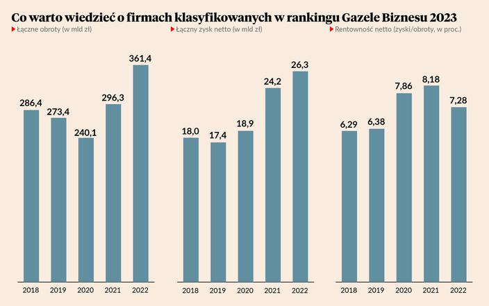 Gazele Biznesu to firmy, charakteryzujące się, podobnie jak przedstawiciele świata fauny, od których pochodzi nazwa rankingu, raczej niewielkimi rozmiarami, ale dużą dynamiką w działaniu i elastycznością w dostosowywaniu się do zmiennych warunków otoczenia. O miejscu firmy na liście decydują wyłącznie wyniki, a konkretnie przyrost obrotów osiągnięty ciągu trzech lat. Tym razem braliśmy pod uwagę lata 2020-22.