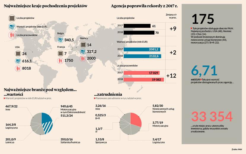 Podkreśla, że aż 41 z zakończonych przez agencję projektów to reinwestycje. Jedną z nich jest rozbudowa fabryki baterii do samochodów elektrycznych LG Chemu w Kobierzycach, która będzie największa na świecie. Właśnie elektromobilność, obok usług biznesowych, wyrosła na jedną z najważniejszych branż. Polskę wybierają także europejskie firmy z tego sektora, w tym belgijski Umicore, który buduje w Nysie fabrykę katod do akumulatorów litowo-jonowych za 1,38 mld zł.