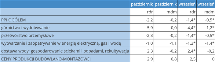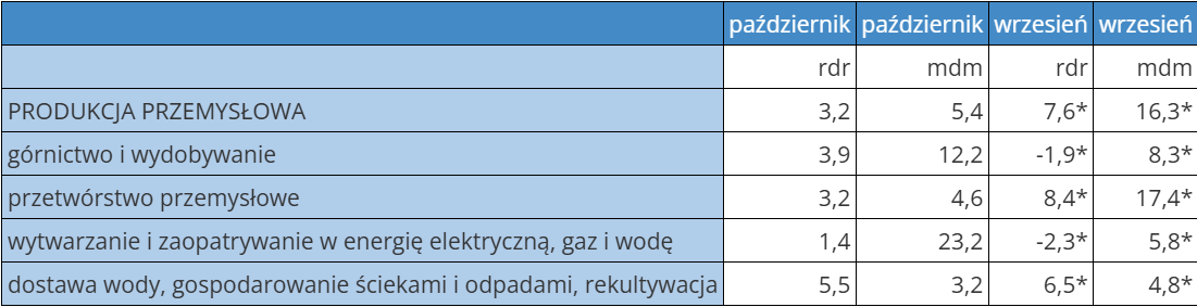 Poniżej wyniki produkcji przemysłowej w październiku i we wrześniu.