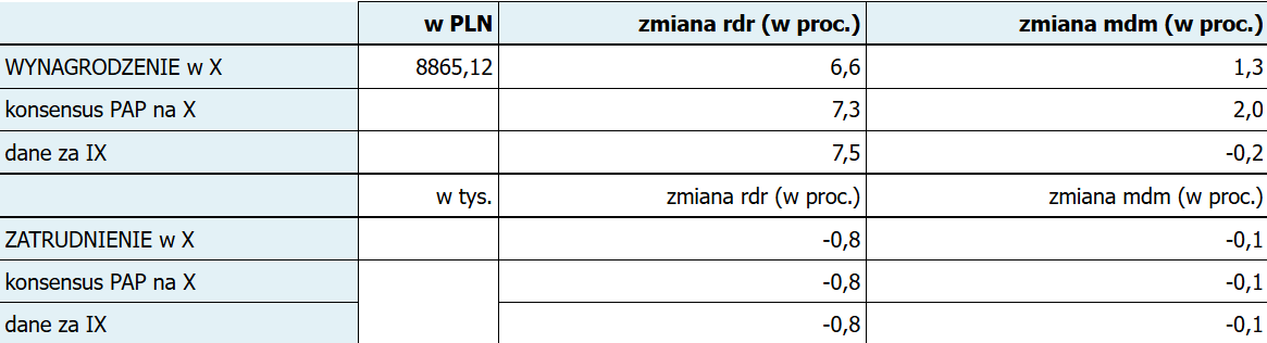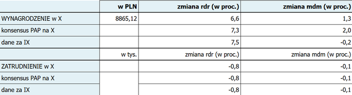 Poniżej dane za październik i ich odniesienie do konsensusów PAP Biznes.