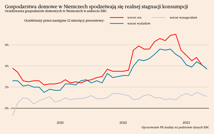 W Niemczech gospodarstwa domowe mocniej niż w innych krajach planowały ratować konsumpcję poprzez redukcję oszczędności. Przez cały okres ankiety niemieckie gospodarstwa domowe oczekiwały spadku wynagrodzeń realnych, a równocześnie wysokiego wzrostu wydatków. Aby móc utrzymać konsumpcję, gospodarstwa domowe musiały korzystać z oszczędności. Częściowo były zmuszone do zwiększenia wydatków, ponieważ trudno redukować rachunki za prąd czy ogrzewanie, a te kategorie drożały w Niemczech najmocniej. Z drugiej strony pokazuje to, że niemieckie gospodarstwa domowe posiadają istotne bufory bezpieczeństwa, które umożliwiają utrzymanie konsumpcji nawet przy bardzo mocnych wzrostach cen.