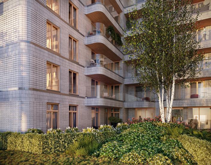 AŚ: Projekt realizujemy we współpracy z warszawską pracownią KAPS Architekci. Inspiracją do jego powstania był modernizm starego Mokotowa: zaokrąglone narożniki oraz szara cegła – znak rozpoznawczy dzielnicy. Zestawiliśmy z tym nowoczesne elementy: panoramiczne drewniane okna, szklane balustrady, wykończenia wnętrz loggii w kolorze drewna. Fasada będzie miała przestrzenną strukturę 3D – cegły będą ułożone w dwóch płaszczyznach, częściowo wystające, co podkreśli światłocień.