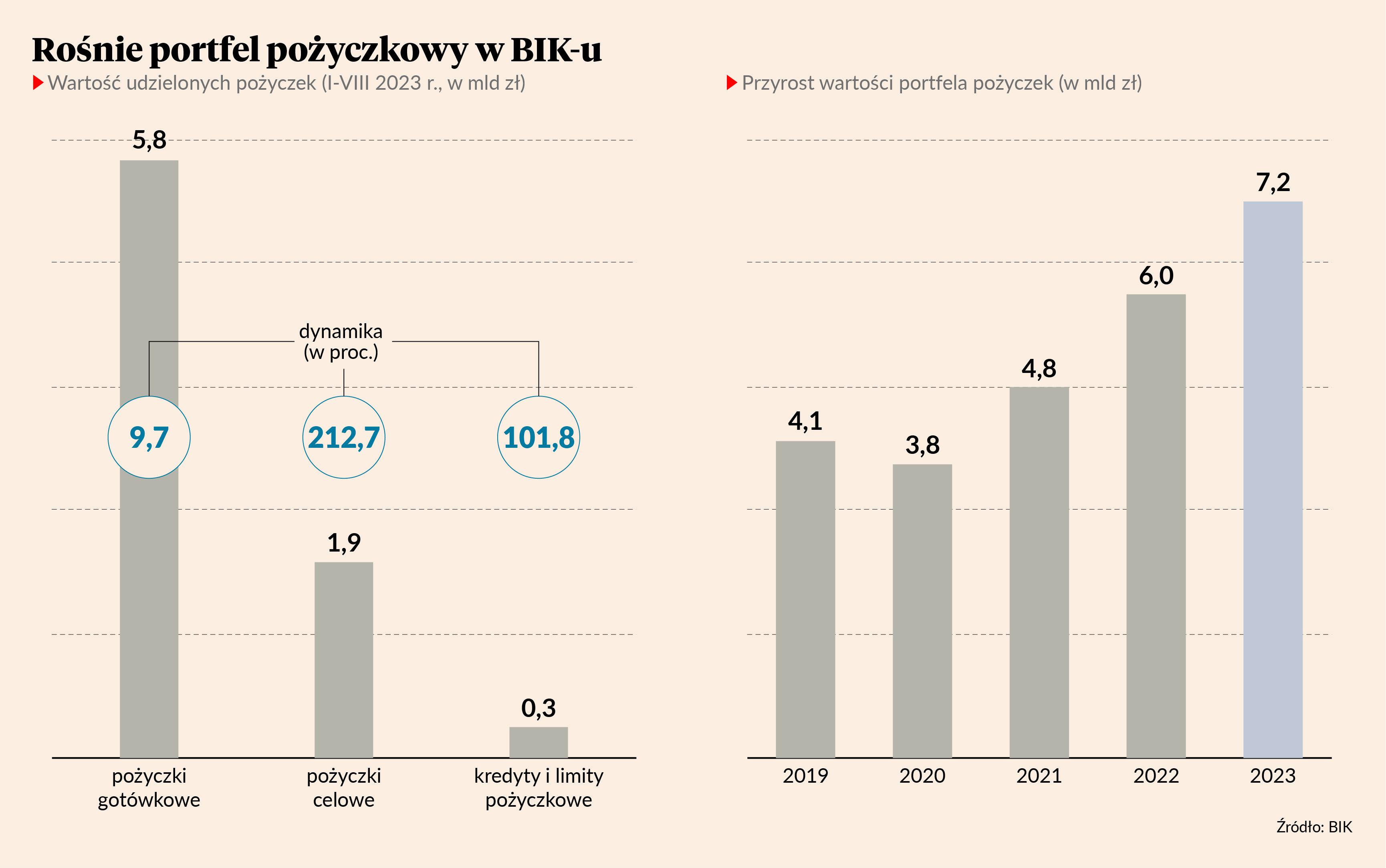 Od początku roku firmy pożyczkowe udzieliły finansowania na 9,239 mld zł. Jak wyjaśnia BIK, wysokie dynamiki to w dużej mierze efekt wejścia w życie ustawy antylichwiarskiej.
