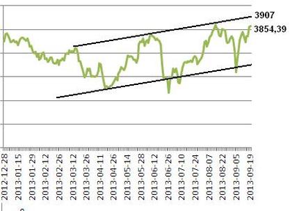 W perspektywie kilku tygodni podstawowym scenariuszem jest rozpoczęcie korekty. Warto jednak uważnie śledzić zachowanie wskaźnika w pobliżu oporu. Przełamanie pułapu 3 907 punktów mogłoby być zapowiedzią nawet 10 proc. zwyżek. Zgodnie z zasadami analizy technicznej wybicie z kanału zapowiada ruch równy jego szerokości, a ta sięga właśnie 10 proc.