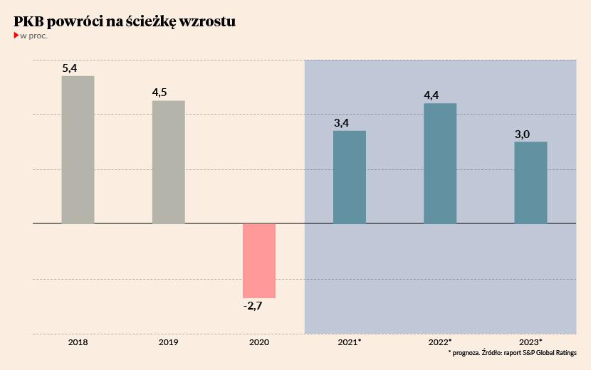 Mimo że gospodarka odczuwa skutki trzeciej fali pandemii, Polska wraca na ścieżkę ożywienia gospodarczego - wynika z raportu agencji S&P Global Ratings. Z uwagi na oczekiwany spadek produkcji w pierwszym kwartale, S&P zrewidowało swoją prognozę w dół o 0,4 pkt proc. PKB w 2021 r. wyniesie 3,4 proc., ale podtrzymanie prognozy uzależnione jest od postępowania szczepień. Polska powinna osiągnąć poziom wzrostu gospodarczego sprzed pandemii w trzecim kwartale jako jedno z pierwszych państw w regionie.
