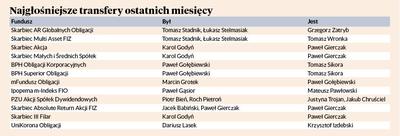 Choć na rodzimym rynku zarządzania aktywami transferów na miarę przejścia piłkarza Neymara do Paris Saint-Germain w ostatnich miesiącach nie było, to było kilka takich, które dotyczyły topowych funduszy w swoich kategoriach. Jeszcze w pierwszym kwartale z PZU Akcji Spółek Dywidendowych (PZU ASD) pożegnali się twórcy sukcesu funduszu — Piotr Bień i Roch Pietroń, których zastąpili Justyna Trojan i Jakub Chruściel.
