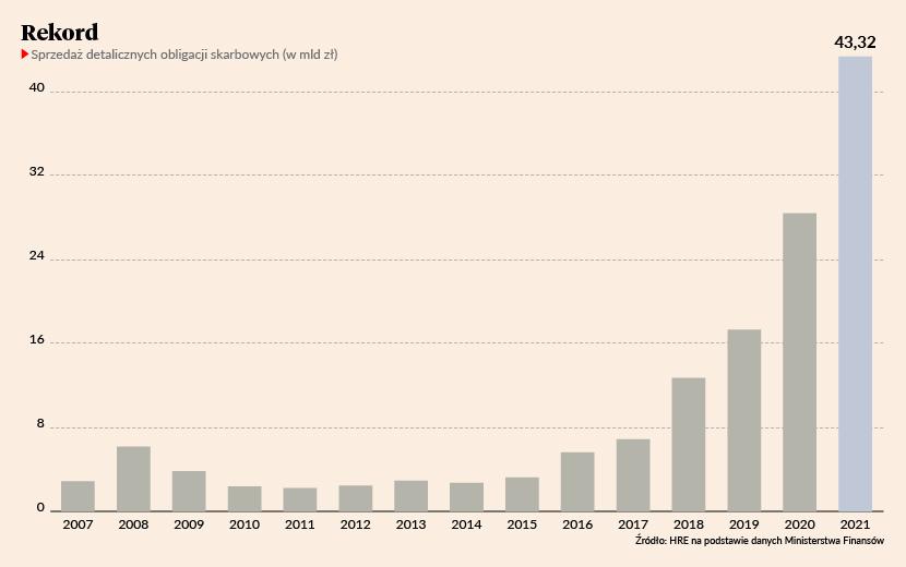 Poszukiwanie sposobu na bezpieczne ulokowanie oszczędności - to powód, dla którego Polacy tak chętnie kupowali papiery, emitowane przez resort finansów, uważa Bartosz Turek, analityk HRE Investments, który podsumował dane o sprzedaży w 2021 r.