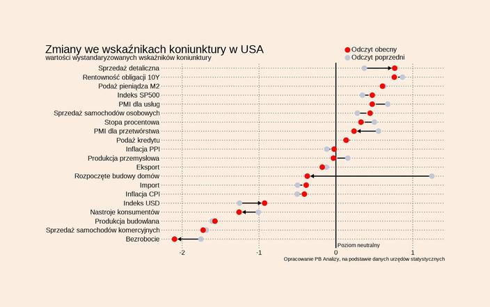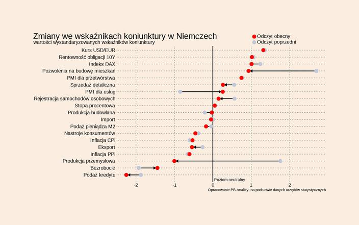 Co tydzień aktualizujemy informacje o kondycji światowej gospodarki przez pryzmat 80 wskaźników z czterech krajów – Polski, Niemiec, Stanów Zjednoczonych i Chin. Są to zarówno informacje o produkcji i sprzedaży, jak też z rynków finansowych. Mają odzwierciedlać faktyczną koniunkturę i nastroje. Wszystkie analizowane dane można obserwować i pobierać na naszej platformie PB Analizy.