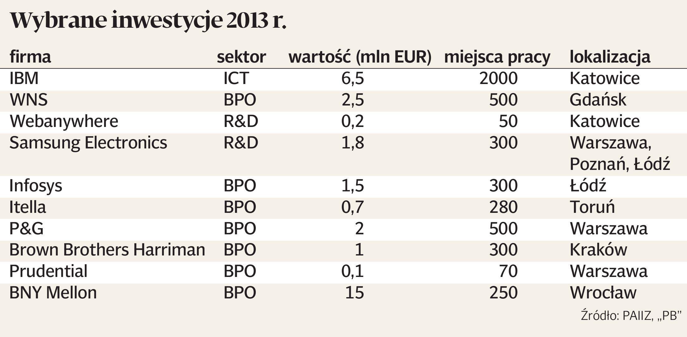 ABSL szacuje, że w branży, w której przez dziewięć lat powstało 115 tys. miejsc pracy, a do 2017 r. może ich przybyć 100 tys., o ile Polska nastawi się na ściągnięcie usług zarządzania międzynarodowymi funduszami. Przygotowuje rozwiązania legislacyjne, w tym wprowadzenie modelu funduszu bez TFI, przyspieszenie czasu rejestracji, wprowadzenie zmian w dokumentacji funduszy czy wprowadzenie usprawnień w komunikacji z Komisją Nadzoru Finansowego. W ubiegłym roku otwarcie centrów usług biznesowych w Polsce ogłosiło 25 inwestorów po rekordowym 2012 r., gdy było ich 56. Polska Agencja Informacji i Inwestycji Zagranicznych zakończyła 22 projekty BPO i ICT warte 26,3 mln EUR, dzięki którym powstanie 6,5 tys. etatów.