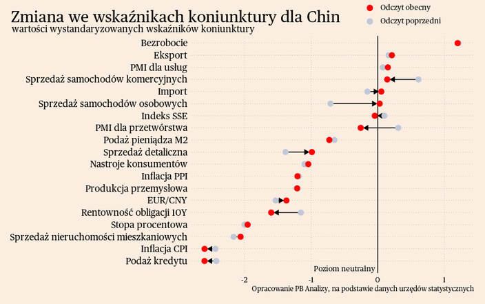 W minionym tygodniu nie zostały opublikowane nowe dane o kondycji chińskiej gospodarki. Gospodarka Państwa Środka lekko odżyła, jednakże nadal brakuje rozwiązań długoterminowych problemów. Brakuje odpowiedzi ze strony Pekinu na nadmierne zadłużenie władz lokalnych, czy przeinwestowania gospodarki. Dotychczas najważniejszym działaniem władz centralnych było pobudzanie państwowych inwestycji w infrastrukturę. Tymczasowo ukryje to skutki kryzysu, jednak w długim terminie nierównowagi ujawnią się ponownie, w jeszcze większej skali.