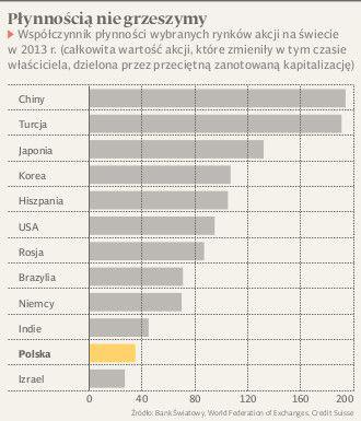 „Wartość obrotów na poszczególnych rynkach jest nie tylko związana z ich wielkością, ale też czynnikami, takimi jak ilość akcji w wolnym obrocie, ograniczenia płynności czy koszty transakcyjne. Co więcej, różnice w kulturze inwestycyjnej wpływają na znaczące różnice w płynności nawet pomiędzy dojrzałymi rynkami akcji” — komentują analitycy banku Credit Suisse.