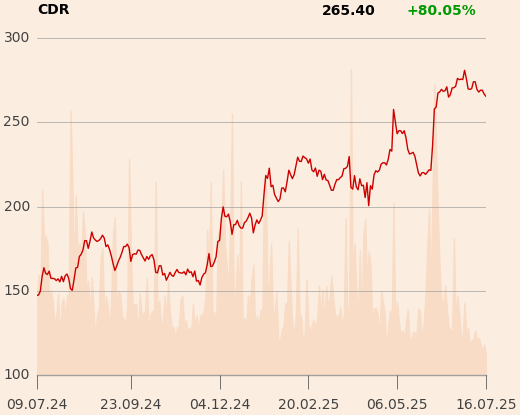 CD Projekt (sprzedaj) pozostaje solidną marką z mocnym portfelem IP i 1,5 mld zł gotówki, ale po ponad 60-procentowym wzroście kursu od grudnia 2024 r. oraz przy silnym złotym potencjał do dalszych zwyżek jest niski. BM mBanku ustalił cenę docelową na 258 zł przy kursie 274 zł, co daje 5,8 proc. możliwego spadku.