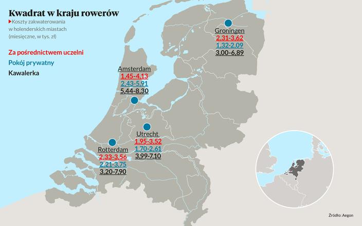 Poza jakością edukacji i szerokim wyborem kierunków zachętą do studiowania w Holandii są też stosunkowo niskie koszty utrzymania. Miesięczny koszt komunikacji miejskiej sięga 170-320 zł, książek i pomocy naukowych 140-320 zł, internetu (jeśli nie jest zawarty w czynszu) do 220 zł, a telefonu do 230 zł.