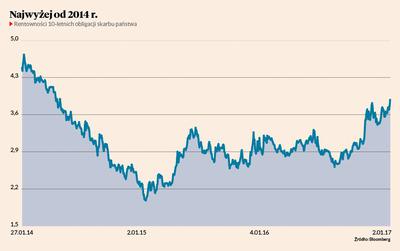 W czwartek po południu rentowności obligacji 10-letnich rosną o 12 punktów bazowych, sięgając 3,8 proc., najwyższego w cenach zamknięcia poziomu od maja 2014 r. Różnica w koszcie finansowania między Polską i będącymi główną gospodarką regionu Niemcami sięga 340 punktów i jest bliska 4,5-letniemu szczytowi.