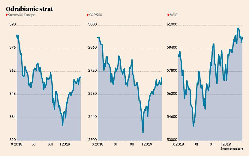 — Przez trzy ostatnie miesiące 2018 r. akcje spadały, a w styczniu 2019 r. zdołały odrobić połowę tych strat. Jeśli miałaby nastąpić deeskalacja wojen handlowych, to niewykluczone, że w lutym odrobią kolejną połowę. Bez porozumienia w tej kwestii może być trudno o paliwo do dalszej zwyżki — twierdzi Rafał Sadoch.