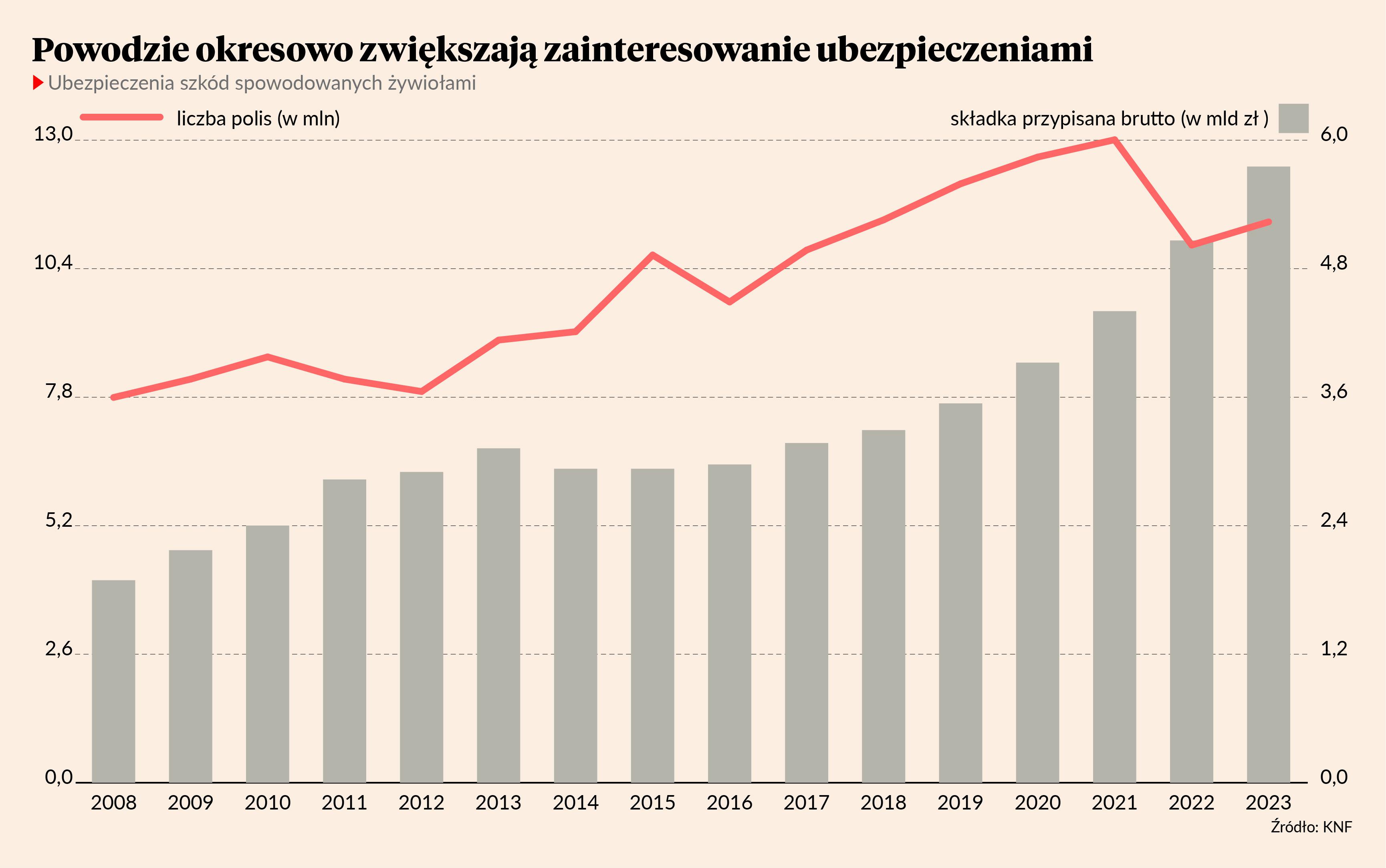 - Karencja nie pozwala ubezpieczyć się tuż przed powodzią, ale ostatnio np. czescy ubezpieczyciele informowali, że po powodzi wielu ludzi przypomniało sobie, że warto się ubezpieczyć, choć efekt jest krótkoterminowy. Mimo to nie należy wykluczyć, że składka z tego źródła będzie dynamicznie przyrastała w najbliższych miesiącach – mówi Michał Konarski, analityk BM mBanku.