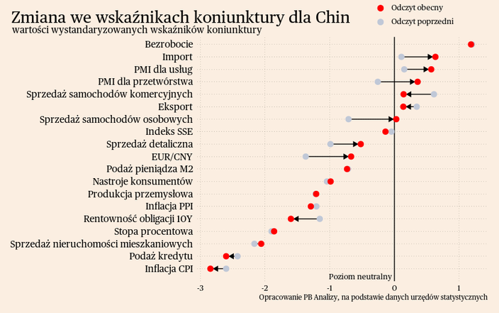 W poprzednim tygodniu nie zostały opublikowane żadne istotne dane z Chin. Gospodarka Państwa Środka nieco odżyła w ostatnich miesiącach, aczkolwiek wciąż nie ma długoterminowych rozwiązań na wyzwania strukturalne. Pekin nie znalazł odpowiedzi m.in. na nadmierne zadłużenie władz lokalnych, czy przeinwestowanie gospodarki. Dotychczas najważniejszym działaniem władz centralnych było pobudzanie państwowych inwestycji w infrastrukturę. Tymczasowo zatai to objawy kryzysu, jednakże w przyszłości brak równowagi znów się ujawni, z jeszcze większą siłą.