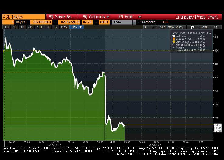 Indeks ASE spadał o ponad 5 proc. o 11:11 w Atenach. Indeks pokazujący notowania banków tracił w tym czasie ponad 9 proc. W ubiegłym tygodniu indeks giełdy w Atenach zyskał 11 proc. Wcześniej, 28 stycznia, zanotował historyczne minimum.