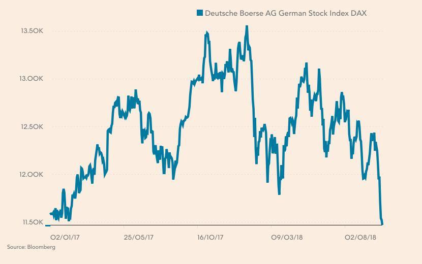Sesja ruszyła zamiast planowo o 9:00 ostatecznie aż godzinę później. DAX rozpoczął tydzień nie tylko sporym opóźnieniem, ale również spadkiem notowań do najniższego poziomu od stycznia 2017 r.