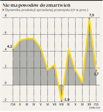 Po mocnym grudniu przyszedł słabszy styczeń. Zgodnie z opublikowanymi w środę danymi GUS, produkcja przemysłowa w Polsce na początku tego roku zwiększyła się — w porównaniu ze styczniem 2014 r. — o 1,7 proc. Tymczasem miesiąc wcześniej zanotowano imponujący wzrost o 7,9 proc. Nie zaimponowała też sprzedaż detaliczna w cenach bieżących — rok do roku wzrosła w styczniu o zaledwie 0,1 proc., podczas gdy ankietowani przez PAP ekonomiści spodziewali się 0,5-procentowej dynamiki. Czyżbyśmy mieli powody do pesymizmu? Niekoniecznie.