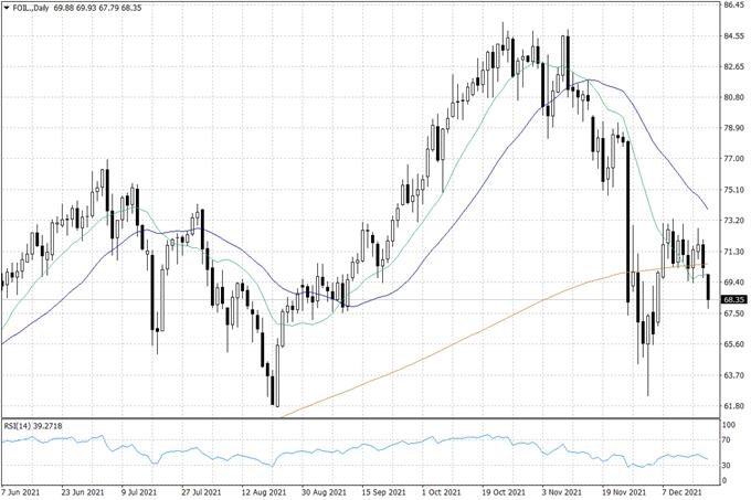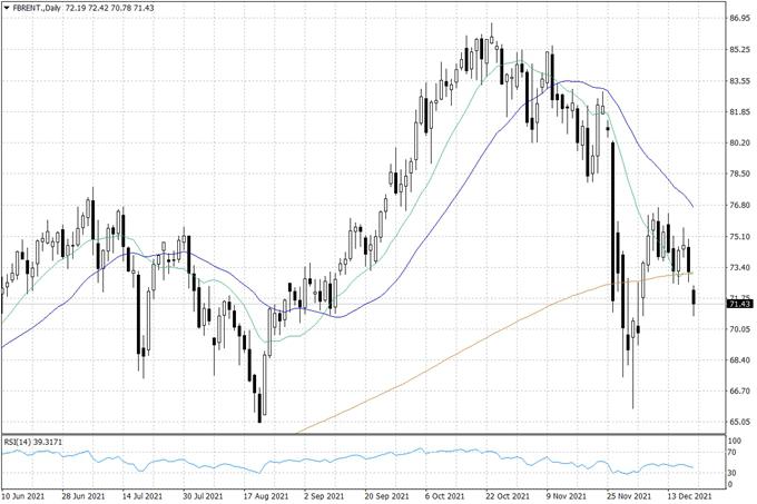 Rozbudzony na nowo pesymizm na rynku ropy naftowej wynika z szerszego nastawienia risk-off na globalnych rynkach finansowych. W centrum uwagi na nowo znalazł się Omikron, bowiem nowy wariant koronawirusa rozprzestrzenia się na kolejne kraje. Niektóre państwa, w obawie przed szybkim wzrostem liczby zakażeń, wprowadzają restrykcje. W miniony weekend zrobiła to Holandia, a panują obawy, że za jej przykładem podążą inne państwa europejskie, zwłaszcza w obliczu zbliżającego się okresu świątecznych wyjazdów i spotkań.