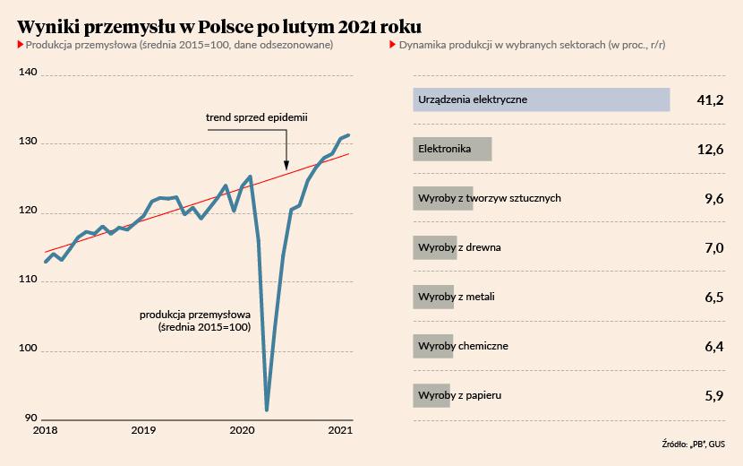 W lutym produkcja przemysłowa była o 2,7 proc. wyższa rok do roku wobec wzrostu o 0,9 proc. w styczniu. Dane były nieznacznie gorsze niż oczekiwali ekonomiści, ale skala zaskoczenia jest bardzo mała i nie zmienia ogólnego, pozytywnego wydźwięku danych. Warto zauważyć, że w ujęciu miesiąc do miesiąca produkcja wzrosła o 0,4 proc., co jest solidnym wynikiem. Poziom produkcji zaś znajduje się powyżej trendu sprzed epidemii. Innymi słowy, wolumen towarów wyjeżdżających dziś z fabryk do klientów jest dziś wyższa, niż firmy mogły oczekiwać u progu zeszłego roku.
