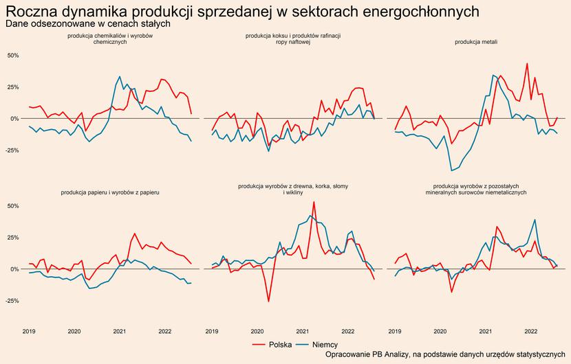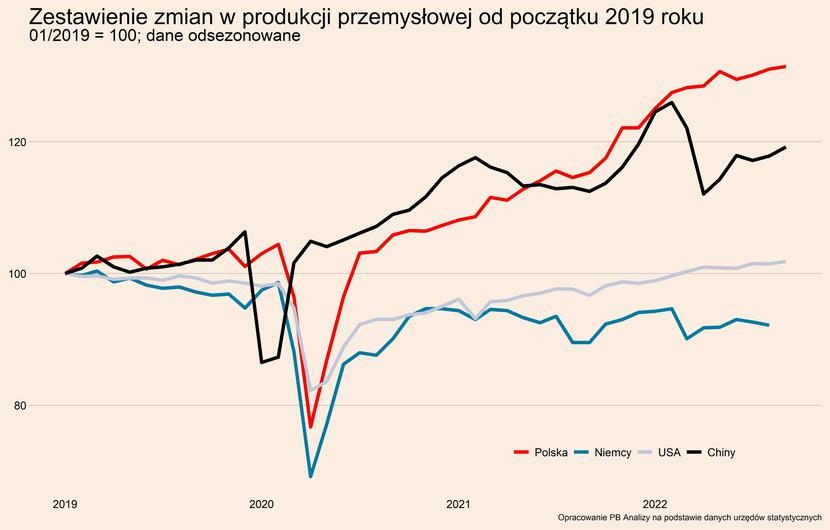 W USA oraz w Polsce produkcja sprzedana przemysłu wzrosła we wrześniu w porównaniu z rokiem poprzednim, a także w porównaniu z poprzednim miesiącem. Za oceanem odzwierciedla to wciąż dobrą koniunkturę w gospodarce. Dzięki oddaleniu Stanów Zjednoczonych od wojny w Ukrainie nastroje w biznesie i wśród konsumentów nie pogorszyły się tak, jak w Europie. Ponadto, w obecne turbulencje gospodarka Stanów wchodziła rozpędzona po bardzo szybkiej odbudowie z pandemii.