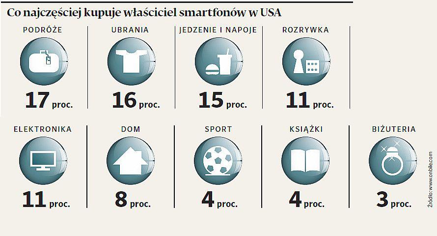 Z wyliczeń firmy Zanox: już teraz co 15 sekund ktoś w Europie robi zakupy, wykorzystując urządzenie mobilne, Niemcy za pośrednictwem smartfonów co minutę wydają 70 EUR na same ubrania, a Francuzi 10 EUR na usługi turystyczne. Wartość amerykańskiego rynku handlu mobilnego w 2012 r. wyniosła 8 mld USD, czyli ok. 4 proc. całego sektora e-commerce. Szacunki wskazują, że w ciągu najbliższych czterech lat rynek ten może się potroić.