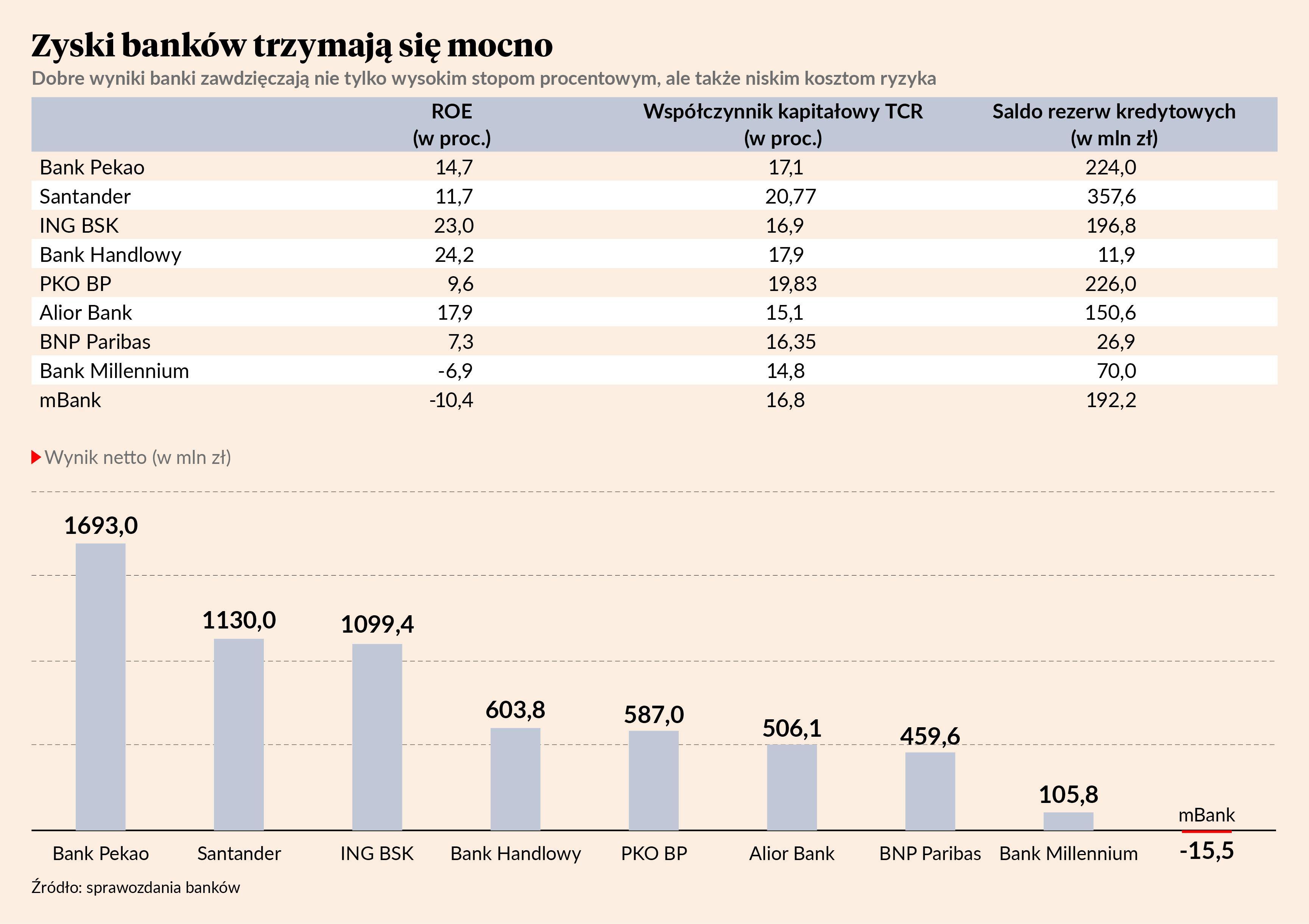 Wynikom banków sprzyjały warunki rynkowe — z jednej strony bardzo wysokie stopy procentowe, a z drugiej bardzo dobra spłacalność kredytów i relatywnie niskie odpisy.