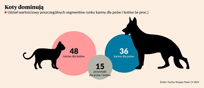 W Polsce żyje już 8 mln psów i 7 mln kotów — szacują eksperci Europejskiego Stowarzyszenia Producentów Karmy dla Zwierząt Domowych (FEDIAF). W pięć lat przybyło ich milion. Rośnie też rynek karmy — w 2024 r. jego wartość przekroczyła 4,9 mld zł, co oznacza 10-procentowy wzrost rok do roku — wynika z danych platformy YouGov. Jego motorem jest nie tylko rosnący popyt.