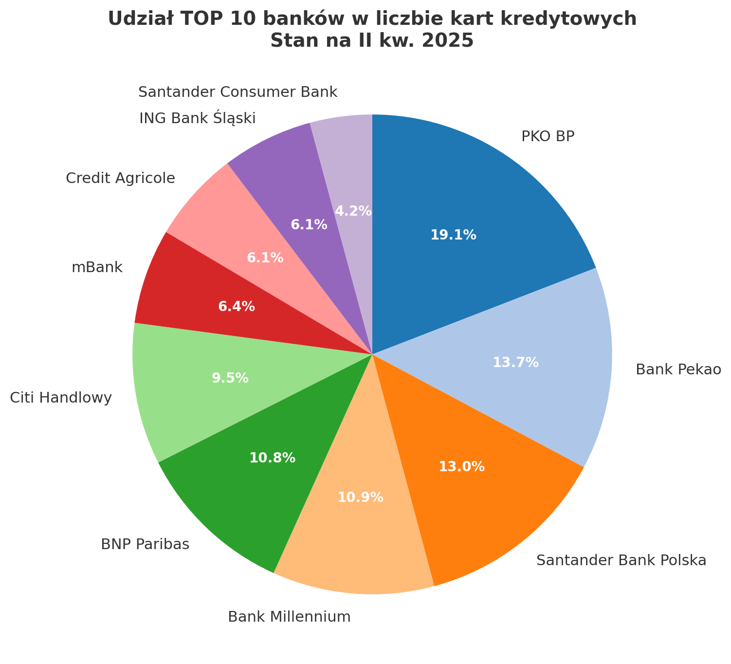 Rynek jest silnie skoncentrowany, a jego rdzeń tworzą trzy największe banki: PKO BP z portfelem przekraczającym 925 tys. kart, Pekao z 661 tys. oraz Santander Bank Polska z 631 tys. Razem odpowiadają one za około 44 proc. wszystkich aktywnych kart. Pierwsza piątka banków, uzupełniona przez Millennium i ING, kontroluje już około dwie trzecie rynku.
