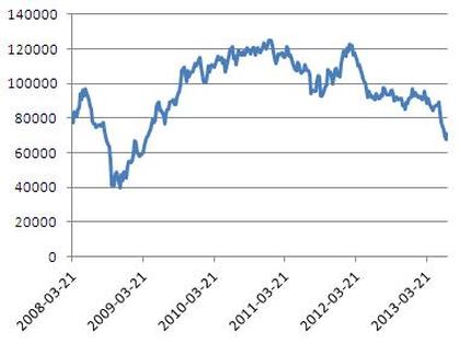 Notowania indeksu Bovespa w ostatnich 5 latach, wyrażone w złotych. Źródło: Bloomberg.
