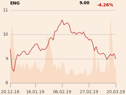 Według danych Bloomberga, średnia z cen docelowych dla akcji spółki to 10,19 zł - o 5,9 proc. mniej niż przed trzema miesiącami. Dla Energi obowiązują 4 rekomendacje "kupuj", 5 "trzymaj", a jedna jest negatywna.