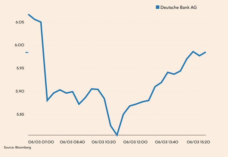 Wartość Deutsche Banku spadała podobnie jak innych europejskich banków. Jego akcje taniały w poniedziałek nawet o 4,7 proc. Inwestorzy czekają na nową strategię banku, którą prezes Christian Sewing , według nieoficjalnych źródeł, ma przedstawić do końca lipca.