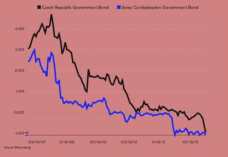 Popyt na obligacje Czech napędza stabilny wzrost gospodarczy kraju, praktycznie zrównoważony budżet, niski poziom długu publicznego, a także zakupy walut przez bank centralny. Zagraniczni inwestorzy kupują krótkoterminowy dług Czech licząc na to, że Bank Czech zrezygnuje w końcu z utrzymywanego od trzech lat ograniczenia kursu wymiany korony i pozwoli na jej umocnienie.