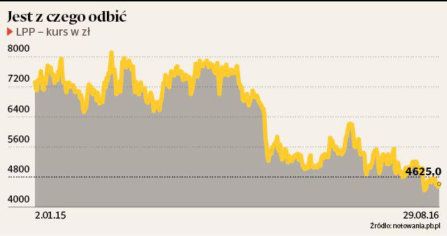 Po publikacji wstępnych wyników finansowych na początku sierpnia 2016 r. akcje LPP dotknęła kolejna fala obniżania wycen przez analityków biur maklerskich. Najbardziej sceptyczny wycenił jedną akcję odzieżowego potentata na 3400 zł. Minęły dwa tygodnie i mBank przedstawił raport pokazujący LPP w zupełnie innym świetle. Nie dość, że jedną akcję wyceniono na 5500 zł, to jeszcze rekomendacja brzmi „kupuj”. A takiej dawno nie było.