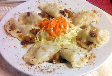 Pierogi z mięsem zdecydowanie własnej roboty. Były z wody (nieodsmażane)  z okrasą. Casto też było takie jak trzeba. Pierogi wypełniono  delikatnym, mięsnym farszem. Żadni tam „fryzjerzy”. Dla  niewtajemniczonych to kupowane w sklepach i odmrażane później w  restauracyjnych kuchenkach mikrofalowych torebki (otwierane potem  nożyczkami). Tym domowym, w Żywieckiej, dodaliśmy do smaku po parę  kropelek maggi.