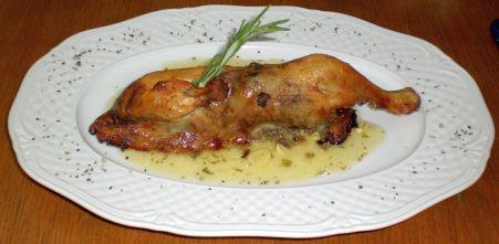 Zastanawialiśmy się długo, co jeszcze innego mogło przeszkodzić w oczekiwanej przez nas harmonii smaków. Wyszło, że chyba zimne talerze (kurczak wyraźnie dygotał). Padły delikatne sugestie, żeby Mistrzyni przynajmniej do „biedaka po polsku” kazała je dobrze podgrzewać.