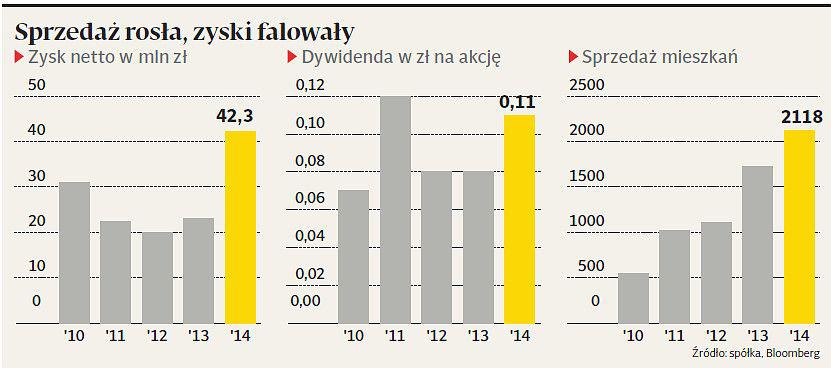 — Potencjał wzrostu zysków jest u deweloperów relatywnie łatwy do oceny. Wyniki zeszłego roku odzwierciedlają sprzedaż 1,6 tys. mieszkań, a w tym roku oceniamy, że będzie to nawet do 2 tys. Bieżącą sprzedaż mieszkań szacujemy jednak ostrożnie na 2,1 tys. Przewyższenie tego pułapu będzie możliwe, jeśli zakupimy działki i rozpoczniemy budowę odpowiednio dużej liczby kolejnychlokali — mówi Wojciech Okoński, prezes spółki.