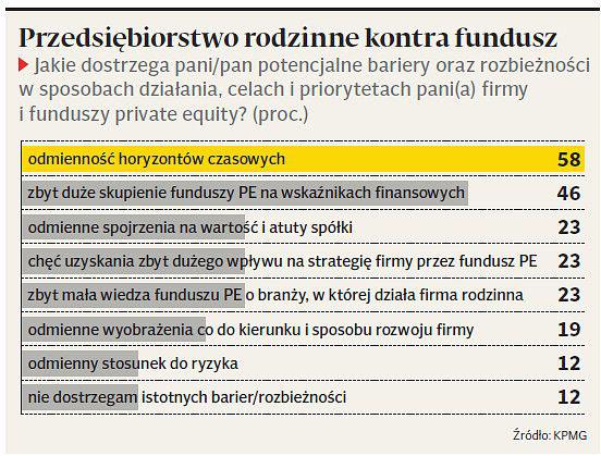 Przy tym jedna trzecia firm przyznała się, że nie ma wiedzy na temat funduszy PE albo jest ona niewielka. Według respondentów największą potencjalną przeszkodą dla współpracyz funduszami PE jest brak długofalowego horyzontu inwestycyjnego funduszy, które zbyt często skupiają się tylko na wskaźnikach finansowych.