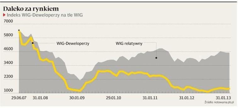 — To jeszcze nie jest czas, by inwestować w spółki deweloperskie. Są oczywiście deweloperzy lepsi i gorsi, ale jest to branża, która ostatnia reaguje na polepszenie, jak i pogorszenie sytuacji gospodarczej. Deweloperzy komercyjni generują przychód z najmu, więc jeśli miałbym wybierać jakąś spółkę, to raczej z tego segmentu — dodaje Marcin Bogusz, analityk Domu Maklerskiego Amerbrokers.