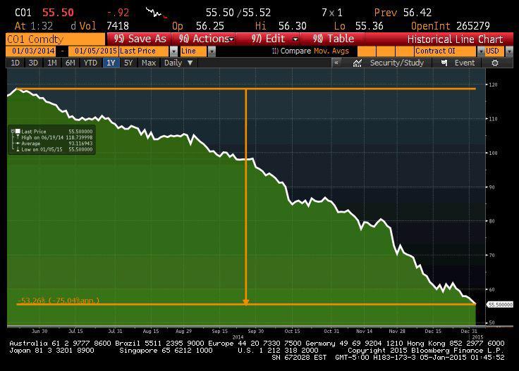 Cena ropy Brent i WTI jest obecnie o ponad 50 proc. niższa niż wynosiła w szczytowym momencie w połowie 2014 roku.