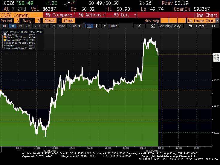 Początkowy sceptycyzm co do skuteczności ograniczenia produkcji ropy przez państwa OPEC ustępuje. W poniedziałek cena ropy Brent przekroczyła 50 USD po raz pierwszy od sierpnia. Analitycy ostrzegają jednocześnie, że utrzymująca się i „uporczywa” nadmierna podaż ropy może ograniczyć zwyżkę jej notowań.