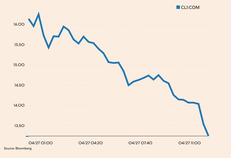Przyczyną spadku ceny ropy nadal jest przekonanie, że popyt na surowiec spada szybciej niż jego podaż. Ropa tanieje mimo planowanego z początkiem maja ograniczenia wydobycia przez OPEC+. Inwestorzy nadal dowiadują się o malejących w szybkim tempie możliwościach magazynowania ropy. Goldman Sachs prognozuje, że globalnie skończą się już za trzy tygodnie. Korea Południowa jako czwarty kraj z Azji poinformowała w poniedziałek, że nie ma już możliwości magazynowania surowca.