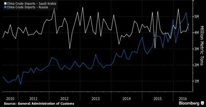 Tym samym Rosja musiała po zaledwie trzech miesiącach oddać Arabii Saudyjskiej miano największego dostawcy ropy do Państwa Środka. W czerwcu lider kartelu OPEC dostarczał Chinom 1,12 mln baryłek ropy dziennie, o 12 proc. więcej niż w maju i najwięcej od lutego. Mimo spadku dostaw do Chin rosyjskie wydobycie i całkowity eksport ropy stabilnie rośnie. W pierwszym półroczu Rosja łącznie eksportowała 5,5 mln baryłek surowca dziennie, o 4,9 proc. więcej niż w tym samym okresie ubiegłego roku.