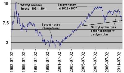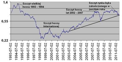Gorzej jednak może być w dłuższym horyzoncie. Powód jest prosty – relacja wartości akcji polskich i amerykańskich jest wciąż znacznie wyższa od historycznej średniej. Jeszcze w czerwcu WIG znajdował się względem S&P500 najwyżej od prawie trzech lat. Wartość indeksu sięgała 14 – krotności złotowej wartości S&P500. Z tak dużą przewagą polskiego parkietu ostatnio mieliśmy do czynienia w listopadzie 2007 r., kiedy WIG był 16 razy droższy od S&P500. W szczycie wielkiej hossy lat 1993 – 1994 – różnica była bliska 20 – krotności.