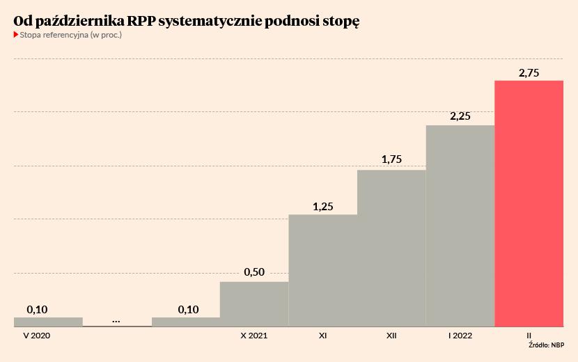 – Widać, że RPP zależy na przewidywalności jej kroków. Spodziewamy się, że w marcu zapadnie decyzja o kolejnej podwyżce o 0,50-0,75 pkt. proc. Nie można wykluczyć, że cykl podwyżek będzie kontynuowany w następnych miesiącach. Stopa referencyjna zatrzyma się na poziomie co najmniej 3,5 proc. - tłumaczy Piotr Bujak, główny ekonomista banku PKO BP.