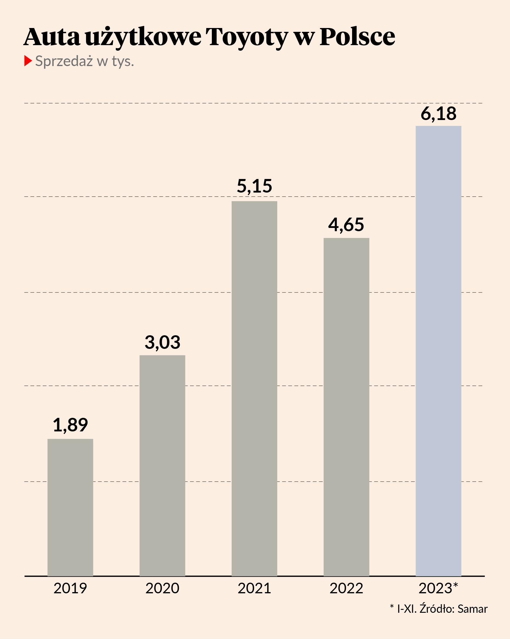 W 2019 r. japoński producent — kojarzony przede wszystkim z technologią hybrydową w autach osobowych — postanowił zbudować drugi filar biznesu. Zaczął w Polsce. To u nas ruszyły pilotażowe struktury nowej marki Toyota Professional. Standardy wypracowane nad Wisłą rozlały się na Europę i przyniosły efekty. O ile w 2019 r. europejska sprzedaż aut użytkowych Toyoty wynosiła 72 tys., o tyle w 2020 r. urosła do 83 tys. W 2021 r. rynek na Starym Kontynencie wchłonął już 118 tys. aut, a rok później o 1 tys. więcej. Plan na 2023 r. zakłada sprzedaż 140 tys. samochodów użytkowych, a średnioterminowy, że takie toyoty zdobędą co najmniej 7-procentowy udział w europejskich rynku z roczną sprzedażą 180 tys. W osiągnięciu tego celu ma pomóc m.in. nowy model. Pozycję na europejskim rynku aut użytkowych Toyota opierała dotychczas na trzech modelach — pick-upie hilux, kompaktowym dostawczym proace city oraz dostawczaku średniej wielkości proace. Tym samym prawie jedna trzecia rynku dostawczaków pozostała niezagospodarowana — pick-upy odpowiadają bowiem za 7 proc. europejskiego rynku aut użytkowych, na kompaktowe i średnie auta dostawcze przypada po 31 proc. i tyle samo należy do dużych dostawczaków, których do tej pory w ofercie Toyoty nie było. Nowy model — proace max — pomoże japońskiemu koncernowi wkroczyć do lukratywnego segmentu aut dostawczych. Podobnie jak mniejsze modele proace również ten z dopiskiem „max” powstaje we współpracy z koncernem Stellantis, co oznacza, że jest konstrukcyjnym bliźniakiem takich aut jak: peugeot boxer, opel movano, citroen jumper czy fiat ducato.