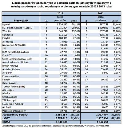 Tym samym irlandzki przewoźnik stał się liderem na polskim rynku i zdetronizował polskiego przewoźnika. W pierwszym kwartale Ryaniar miał 28,11 proc. udział w rynku, wobec 21 proc. w analogicznym okresie ubiegłego roku. Tak duży skok przewoźnik zawdzięcza m.in. wprowadzeniu lotów z Warszawy
